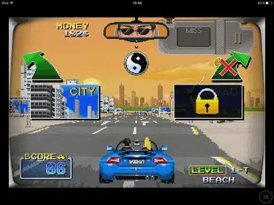 Auch wenn das Spiel ein echtes Arcadespiel ist, zeigt es immer wieder faire Gesten. So kann man zum Beispiel nach den zwei Fehlversuchen doch noch weiterfahren – vorausgesetzt man investiert eine Münze. Die kann man aber nicht kaufen, sondern nur in späteren Leveln einsammeln.