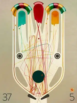 Prinzipiell ist es ein klassischer Flipper, bei dem auf einem 2D-Tisch einen Ball bugsiert und mit zwei Flipper-Armen daran hindert, in das Loch unten zu fallen. Das war es aber dann auch schon mit den Gemeinsamkeiten. Statt Punkte zu machen, müsst ihr bei INKS mit dem Ball farbige Felder berühren, die daraufhin platzen und sich mischen. Der Ball bekommt bei der Aktion auch gleich noch Farbe ab und hinterlässt Spuren. Probiert man etwas länger, kann man herrlich abstrakte Muster auf die Tische malen.