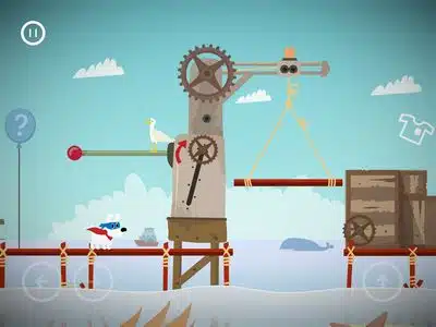 Einzigartig ist auch Mimpi Dreams, da er die selbe Spielmechanik verwendet: In der Spielwelt kommt man mit Hund Mimpi immer wieder an Stellen, an denen man die Finger von den virtuellen Buttons nimmt und direkt in die Spielwelt eingreift. So verschiebt man zum Beispiel Wolken über einen Abgrund, auf die Mimpi dann springen und so das Hindernis überwinden kann. So legt man auch Schiffsmasten um oder dreht kleine Schalter. Schöne Idee, die ich immer noch nicht in anderen Spielen dieser Art so gesehen habe.