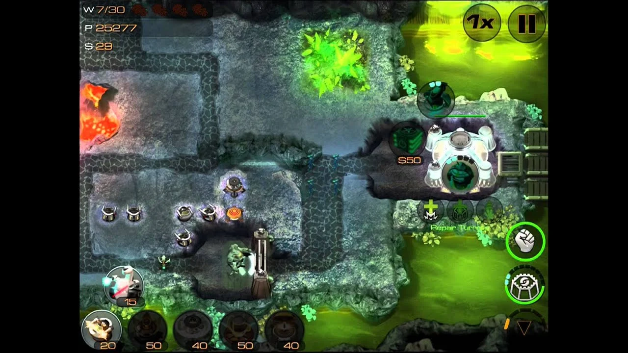 Das Gameplay an sich bietet wenig Neues zur bekannten TowerDefense-Mechanik: Man baut (und verbessert) auch hier Türme zur Verteidigung, die Karten haben verschiedene Angriffsrouten, die Missionen sind mit bis zu 30 Angriffs-Wellen ziemlich lang. Damit ist es wieder mal ärgerlich, wenn man erst nach 15 Minuten merkt, dass die eigene Strategie nicht aufging und man es noch einmal versuchen muss. Immerhin kann man das Gameplay bis zu dreifach beschleunigen.